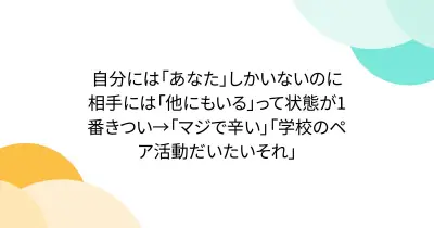 自分には「あなた」しかいないのに相手には「他にもいる」って状態が1番きつい→「マジで辛い」「学校のペア活動だいたいそれ」