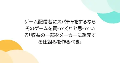 ゲーム配信者にスパチャをするならそのゲームを買ってくれと思っている「収益の一部をメーカーに還元する仕組みを作るべき」