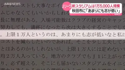 【悲報】Jリーグさん、秋田市との協議を開示されてしまう…「秋田は志が低い」「公設が絶対」など