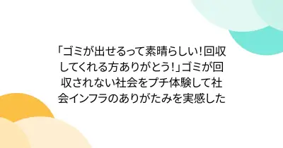 「ゴミが出せるって素晴らしい!回収してくれる方ありがとう!」ゴミが回収されない社会をプチ体験して社会インフラのありがたみを実感した