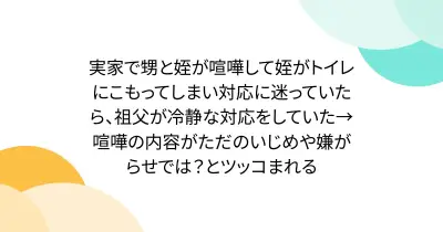実家で甥と姪が喧嘩して姪がトイレにこもってしまい対応に迷っていたら、祖父が冷静な対応をしていた→喧嘩の内容がただのいじめや嫌がらせでは?とツッコまれる