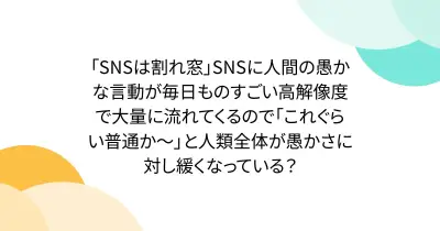 「SNSは割れ窓」SNSに人間の愚かな言動が毎日ものすごい高解像度で大量に流れてくるので「これぐらい普通か〜」と人類全体が愚かさに対し緩くなっている?