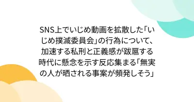 SNS上でいじめ動画を拡散した「いじめ撲滅委員会」の行為について、加速する私刑と正義感が跋扈する時代に懸念を示す反応集まる「無実の人が晒される事案が頻発しそう」