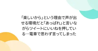 「楽しいから」という理由で声が出せる環境だと「あっぱれ」と言いながらツイートにいいねを押している…電車で思わず言ってしまった