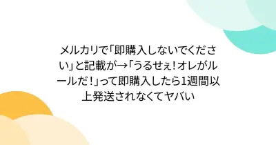 メルカリで「即購入しないでください」と記載が→「うるせぇ!オレがルールだ!」って即購入したら1週間以上発送されなくてヤバい