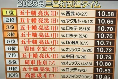 三塁打到達タイムランキング、上位がとんでもないことになる