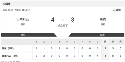 【2軍 日本ハムvs.西武】4-3で勝利!