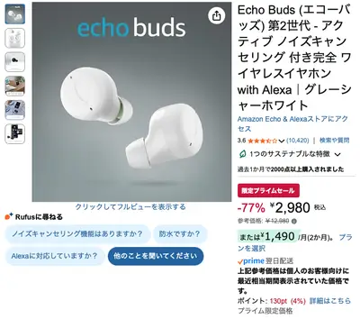 Amazonのイヤホン「Echo Buds」なぜか1万円引の2,980円で売られてしまう