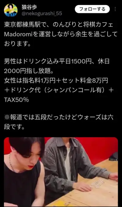 【朗報】頂き女子りりちゃんの彼氏、将棋カフェを運営し余生を楽しんでいた