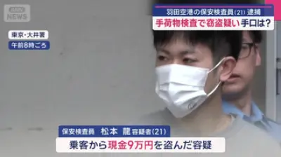 【事件】「スリル楽しむため」羽田空港の保安検査員(21)逮捕…手荷物検査中に乗客の荷物から現金盗む