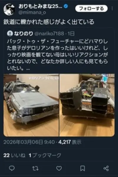 【ばくおん】漫画家・おりもとみまな、子供が作ったデロリアンを「鉄道に轢かれた感じがよく出ている」と小馬鹿にして炎上→削除逃亡&リプした人間を片っ端からブロックwwwww