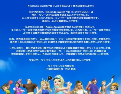 みんゴル開発クラップハンズ、みんなのゴルフWORLDの問い合わせ殺到でお気持ち表明