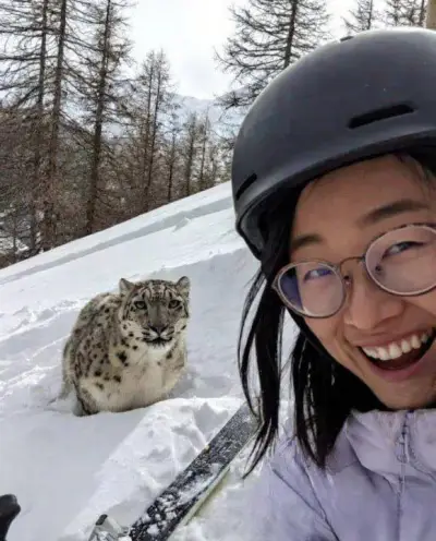 スキーに来た女性「うわあ~ユキヒョウだ~!一緒に自撮りしよ~!」パシャリ