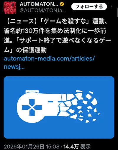 「サ終のゲームをせめてオフライン化しろ」と海外で署名が広がる