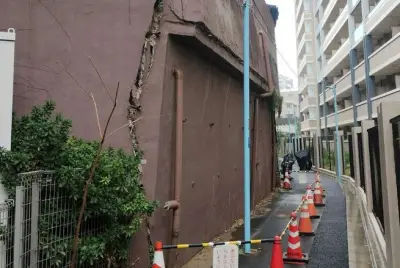杉並の住宅街崩壊、擁壁の亀裂がとんでもなく怖すぎる