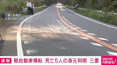 5人が死亡の軽乗用車横転、全員の身元が判明 16~18歳の女性3人と20歳と23歳の男性2人