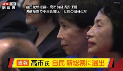 高市早苗氏が自民党の新総裁に選出、女性初の総裁が誕生