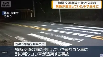 8歳男児が自転車で横断歩道渡る→横断するのを待っていた車に別の車が追突→玉突きで男児死亡