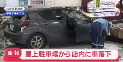 高齢男性が運転する車、スーパー屋上の駐車場からダイナミック入店