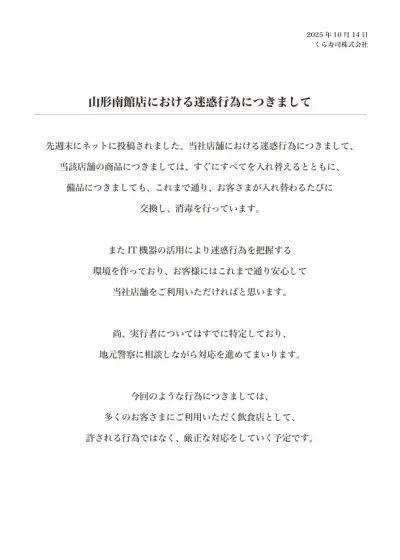 くら寿司公式ブチ切れ声明発表 女子高生がカバーを開けて中の寿司を触りまくる迷惑行為