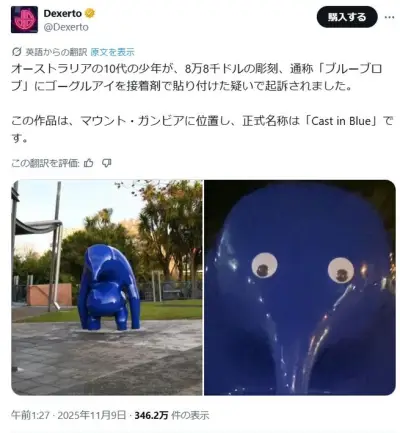 オーストラリアのガキ、1000万円超えの彫刻に接着剤で目を貼り付けて起訴される