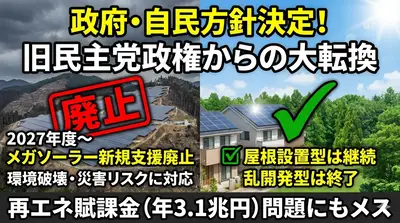 【朗報】旧民主党政権下の再エネ推進からの大転換 高市政権、環境破壊や災害リスクに対応するため「メガソーラー新規事業に対する支援を廃止」