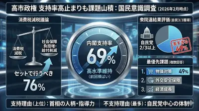 【日経世論調査】高市内閣支持率、ほぼ横ばい69% 国民会議「負担増も議論を」76%