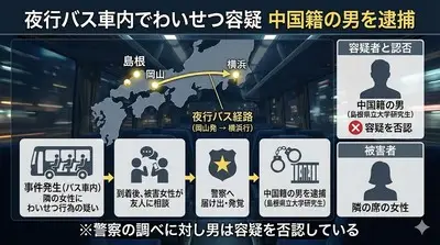 【座られたら最後】中国人38歳、夜行バスで隣席の女性24歳に到着まで自由に好き放題わいせつ行為「覚えはありません」