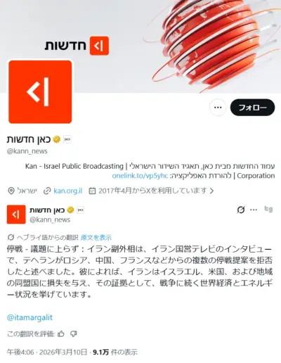 【速報】イラン、停戦条件を提示「イランの国家承認、賠償金の支払い、国際的な侵略再発阻止の保証な」