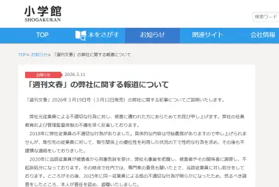 【謝罪も一部内容否定】小学館、またも不祥事「弊社元従業員が取引先の従業員に対して、優位性を利用した性的な不適切行為」