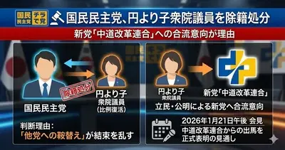 【速報】国民民主党、中道改革連合から出馬意向の円より子氏を除籍処分「党の結束を乱す行為を行った」