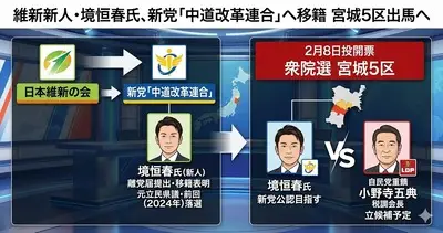 【衆院宮城5区】新人境恒春氏、日本維新の会を離党して中道改革連合で出馬意向 次々と各党から集まりだす