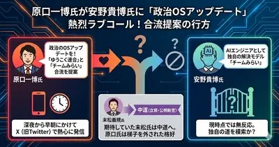 【衆院選】原口一博氏が安野貴博氏へラブコール「私『たち』を、チームみらいに入党させて」 新人の安野貴博に厳しい選択を迫られる試練