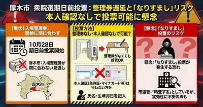 【悲報】厚木市「投票券郵送が間に合わないので本人確認なし!」成り済ましの懸念について市選管「精査したい」