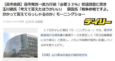 【悲報】高市発言→武力行使「必要33%」世論調査に驚き 玉川徹氏「考えて答えたほうがいい」 猿田氏「戦争参戦ですよ。分かって答えてらっしゃるのか」