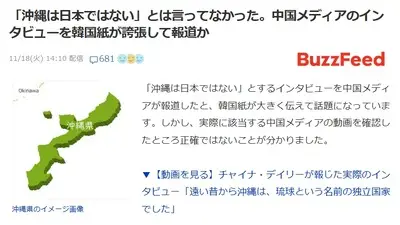 【速報】韓国大手が引用で報じた「沖縄は日本ではない」、実は言っていなかった模様 中国メディアのインタビューを誇張して報道か