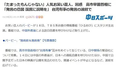 【台湾有事の発言】お笑い芸人のバービーさんが激怒「たまったもんじゃない!中国側に撤回するより前に、国民に向けて説明してほしい!」撤回しませんが?