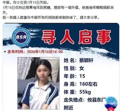 【例の子か】中国の廃棄物置き場にて、両方の腎臓が無くなっている15歳の女の子の遺体が発見か