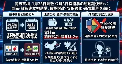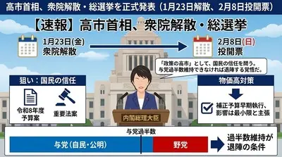 【速報】高市早苗首相、衆院選勝敗ラインは「与党で過半数」、メディア「あと3議席で達成じゃないか!かすむ解散の大義!!」