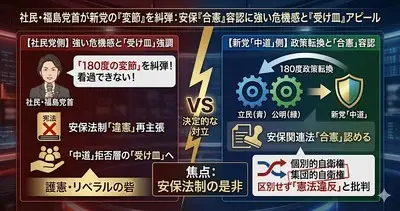 【集団的自衛権】中革連「当然合憲だ。基本政策に書く。それに賛同する人が参加するのが新党だ」立民「当然違憲だ」犬猿の仲へ
