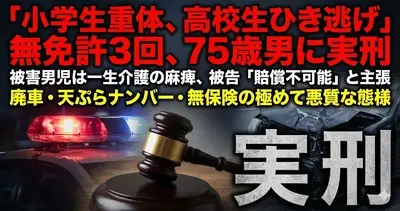 【速報】小学生を轢き半身麻痺&賠償不能→廃車で無保険無免許轢き逃げ→無免許運転継続→息子が警察に突き出す 裁判所「懲役3年2か月」
