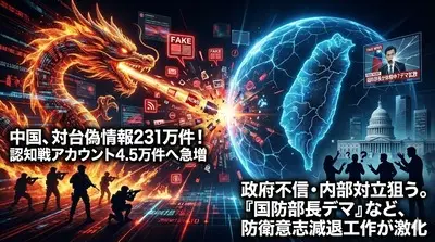 【速報】中国からの世論操作情報231万件「台湾統一」狙い、日本のSNSも標的