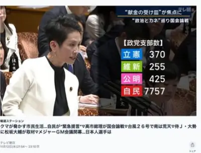 【速報】高市首相、企業・団体献金の規制強化検討「政治活動の自由に関わる問題、慎重さ必要」