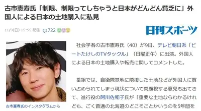 【土地購入規制】 古市憲寿「制限しちゃうと日本がどんどん貧乏に」中国人がどんどん買っても「全然いい」