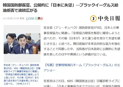【速報】韓国政府、給油拒否の件まだ言ってる 国防部長官「失望」日本政府に公開的に失望感を表したのは異例