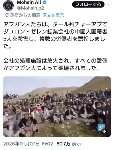 【速報】アフガニスタンにて現地の人々が中国のレアアース採掘精錬施設を破壊、中国人5名を殺害
