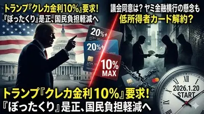 【速報】トランプ米大統領、クレジットカード金利に1年間の10%上限設定を要求「クレカ会社がアメリカ国民からぼったくることを許さない」