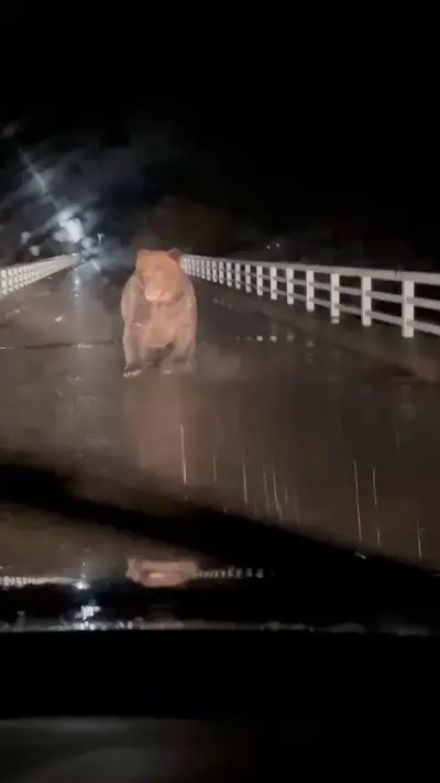 【動画】北海道の牧場作業員が橋の上でヒグマに遭遇「警察じゃ絶対戦えないだろこれ」「でかすぎる」「なおこれが山から追いやられた雑魚個体」