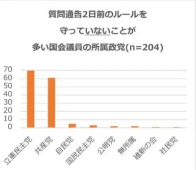 【悲報】国会質問通告2日前のルールを守っていない事が多い国会議員の所属政党がこちら