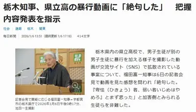 【速報】和服記者会見の栃木知事、県立高の暴行動画に言及「絶句した。卑怯者、弱い者いじめはやめろ」県教委・高校・自治体に抗議の電話殺到している模様